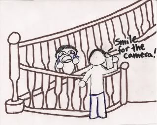 Needless to say, as a baby, I didn't know the term of "think before you act", and I joyously squished my head through the banister hole. Happily grinning at my accomplishment, I stood there for a few seconds, feeling like the coolest kid in the word.